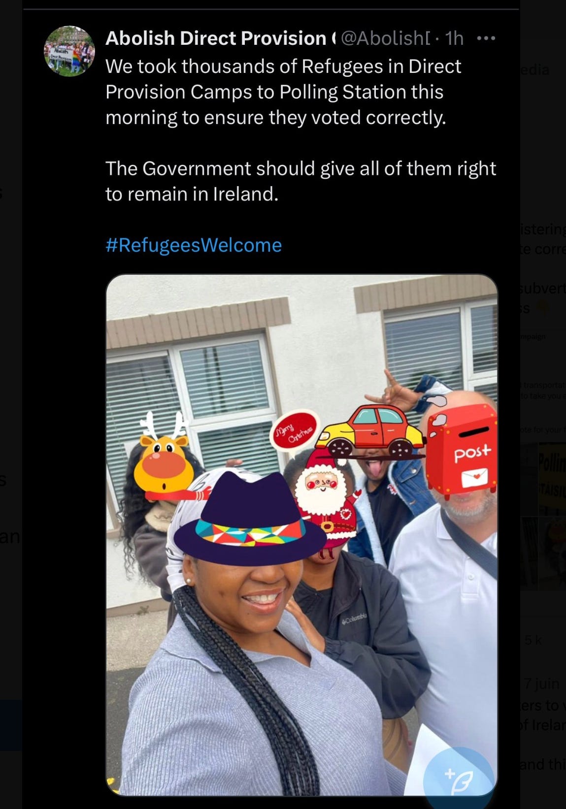"We took thousands of refugees in Direct Provision Camps to Polling Station this morning to ensure they had voted correctly".